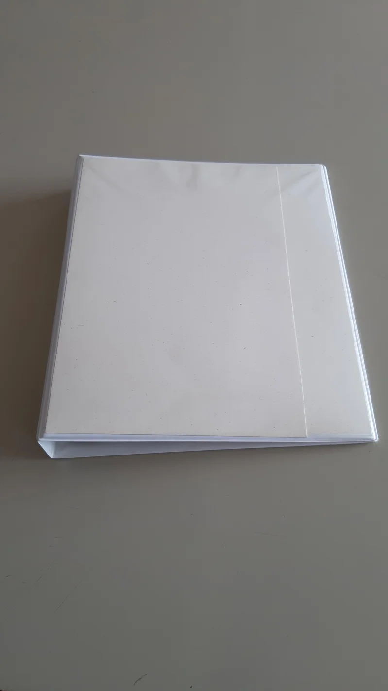 Racccoglitore in pvc cedro 3/10 bianco con tasca su 1°copertina e dorso per la personalizzazione - fto UNI - con dorso mm.60 - con meccanismo 4 anelli a D h.40 passo 80 applicato sulla 3° copertina.
